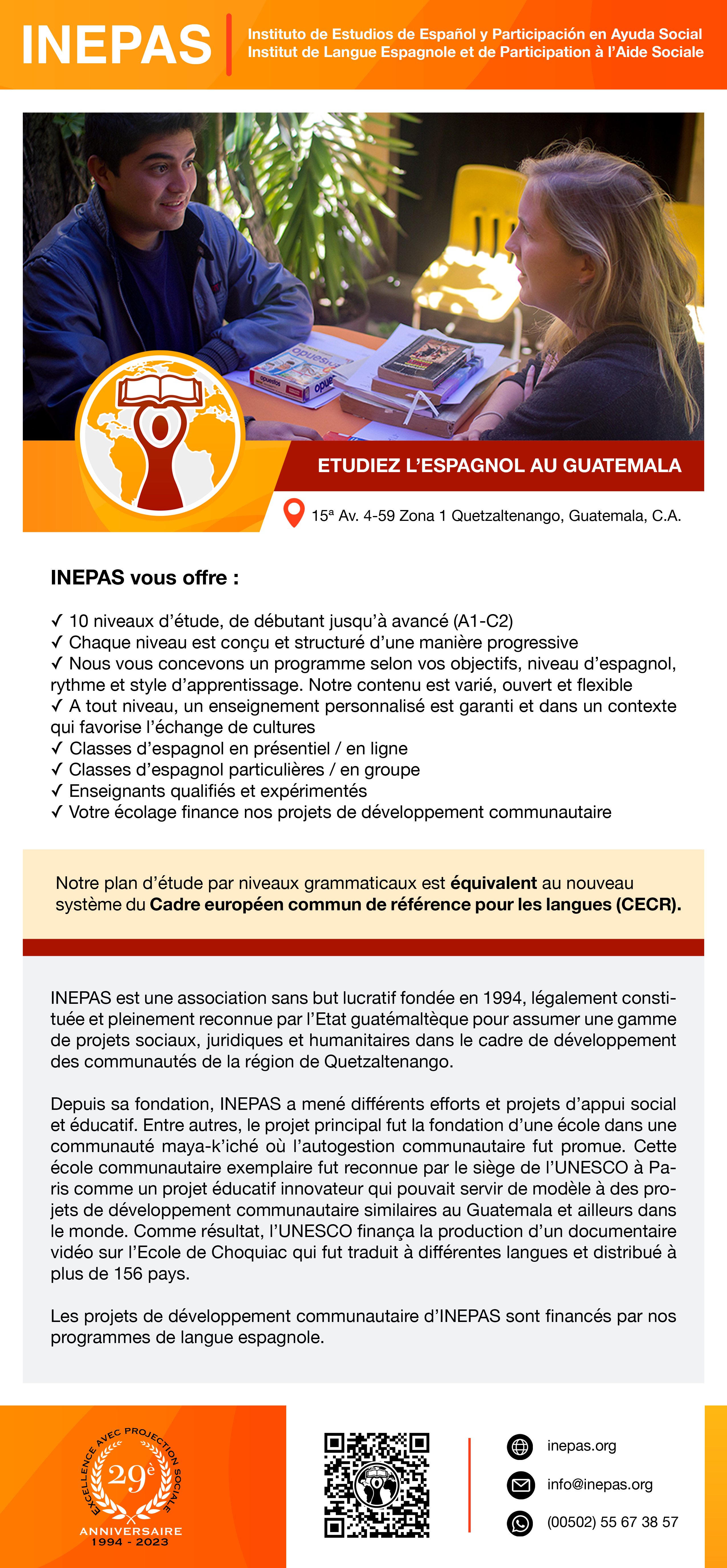 Que cela soit pour offrir à des membres de votre famille, à vos ami(e)s ou connaissances, vous disposez de la possibilité d’acheter des cartes cadeaux dont la validité est de trois ans. Ces cartes sont transmissibles et sont valides pour toute notre offre, inclus nos cours en ligne. Elles ne sont pas remboursables. Notre offre comprend une série de cinq cartes, de GTQ 500 jusqu’à GTQ 4’000, en plus d’une option personnalisable.Comment nous aider davantage ?